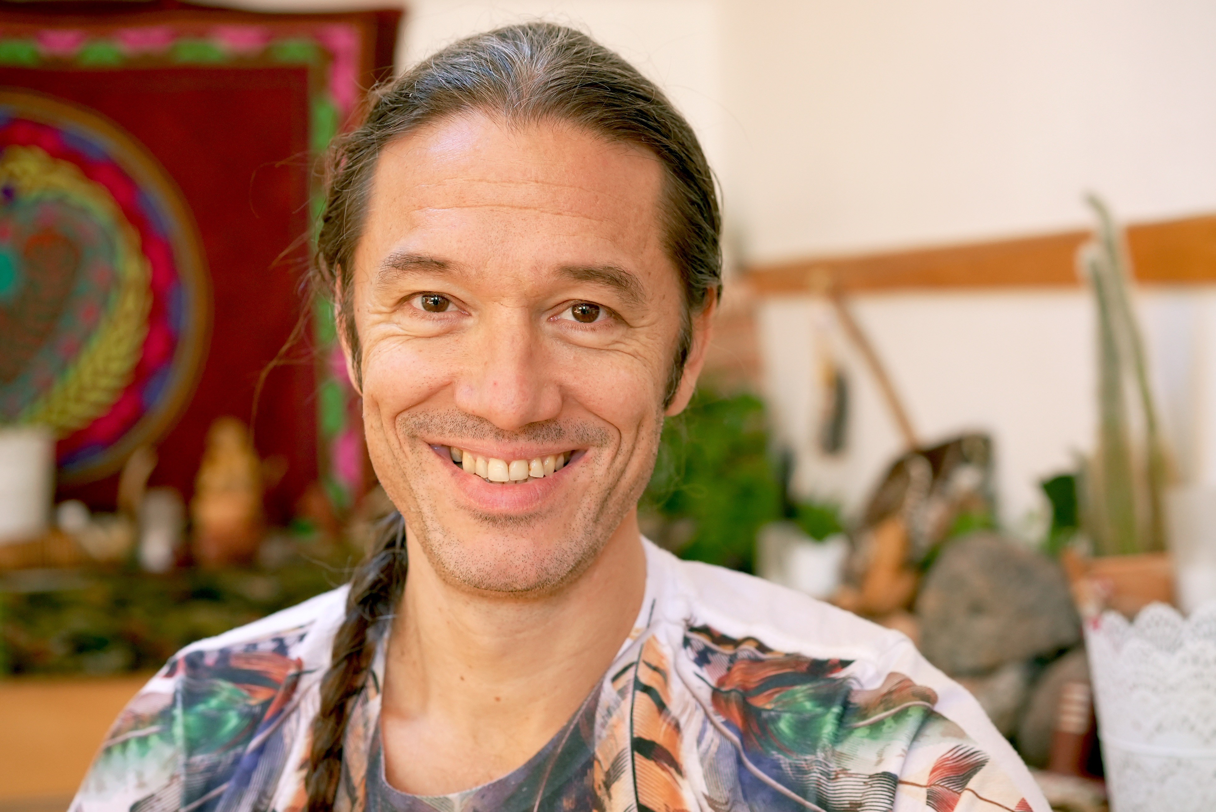 Issu d’une famille de musiciens et d’entrepreneurs, sa sensibilité et sa générosité l’amènent au massage, au Chamanisme puis au Tantra. Sa rencontre avec Marie Jésus AMRITA est déterminante : il suit ses enseignements puis devient son co-animateur et son partenaire de vie.